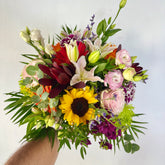 Cada ramo se envía protegido en nuestra caja reforzada exclusiva, envuelto cuidadosamente para garantizar frescura e integridad durante el transporte.